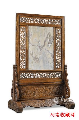 花梨雕螭龙纹插屏式座屏风,华艺国际上拍