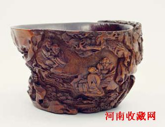 清·竹雕曲水流觴杯,採用一體量較大的竹根,隨形高浮雕而成,松石山陰,溪水曲曲,數高士臨流而坐,暢敘幽情,蘭亭序的詩意漫出。明代竹雕簋式爐,用竹根圓雕而成,極具明代內斂又氣韻生動的風格。形制則仿照西周青銅器,是竹雕中難得一見的精品佳作。