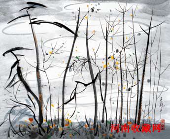 3、吳冠中的兩件作品分別是《睡蓮》和《林》,其中作于1976年的《睡蓮》,是其前期水墨畫的代表作之一,中西造型手法貫通其中,尤可寶貴,並於1979年由人民美術出版社出版。而《林》亦是吳氏成熟時期的力作,輕鬆的筆調實則是精思傑構流於筆端的深淺吐納,情韻早溢畫外。