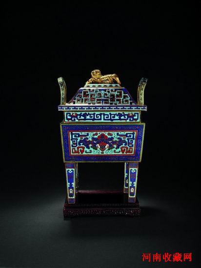清·銅胎掐絲琺瑯獅鈕鼎式熏爐