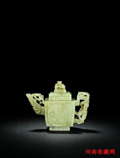 君子佩玉之風盛古即有,一般常見之明清玉器多以佩件、把件為多。此次得白玉雕琢製成之梅花盤龍鈕壺,梅花盤龍鈕壶,高頸折肩,壺體弧收,平底起圈足。四面開光,皆內飾鏤空梅花紋。柄、蓋、流處皆高浮雕螭龍作飾。此壺造型典雅雋秀,配琢螭龍紋飾,極盡華美之資,可謂白玉壺中的極致之作。