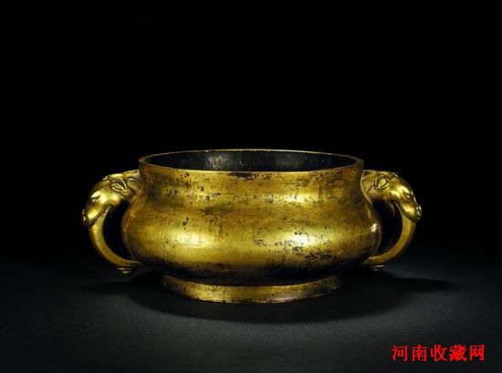 明·湧泉款銅鎏金獸耳爐