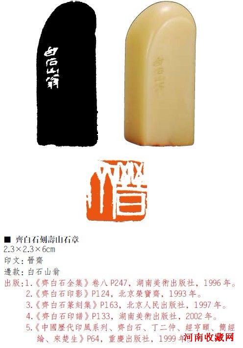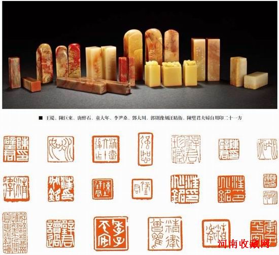 縱觀拍品明清篆刻名家有歸世昌、吳晉、沈鳳、錢坫、錢泳、屠倬、趙之琛、吳讓之、錢松、趙懿、徐三庚、趙之謙、何昆玉、王雲。晚清、民國至當代篆刻家有吳昌碩、徐星周、齊白石、羅振玉、吳隱、王大炘、童大年、趙時棡、陳師曾、陳半丁、黃少牧、王福庵、周梅谷、楊千里、李尹桑、鄧爾雅、唐醉石、容庚、吳湖帆、吳南愚、喬大壯、王个簃、張大千、沙孟海、方介堪、朱復戡、來楚生、陳巨來、韓登安、葉潞淵,單曉天、吳樸、方去疾、髙式熊、童衍方等。