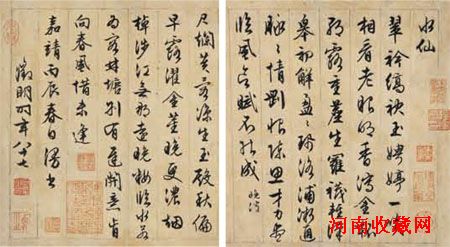 文徵明(1470 ~ 1559) 行書 遊元墓洞庭詩 紙本 冊頁(二十八頁選十六頁) 1558 年作 23×12cm×28