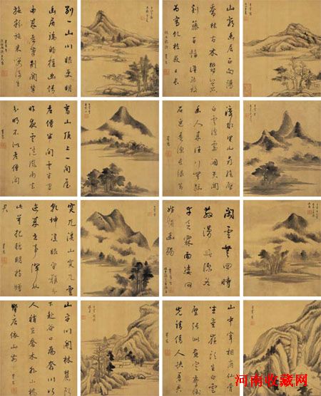 水墨絹本 冊頁(十六頁) 29.5×24cm×16