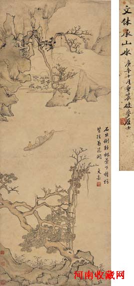 文 嘉(1501 ~ 1583) 清湖蕩舟圖 設色紙本 立軸 103×40cm