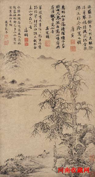唐 寅(1470 ~ 1523) 臨流試琴圖 水墨紙本 立軸 50×27cm