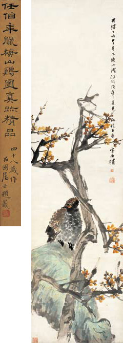 任伯年(1840 ~ 1895) 臘梅山雞圖 設色紙本 立軸 1887年作 150×40cm
