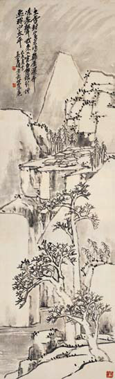 吳昌碩(1844 ~ 1927) 山村雪霽圖 水墨綾本 立軸 1919年作 146×4