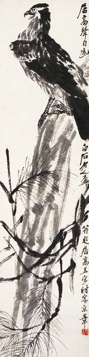 齊白石(1863~ 1957) 松鷹圖 水墨紙本 立軸 137×35cm