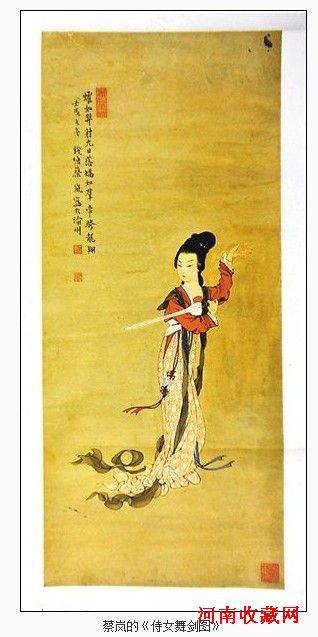 左图:蔡岚的《侍女舞剑图》以59000元成交,为当日成交最高价。