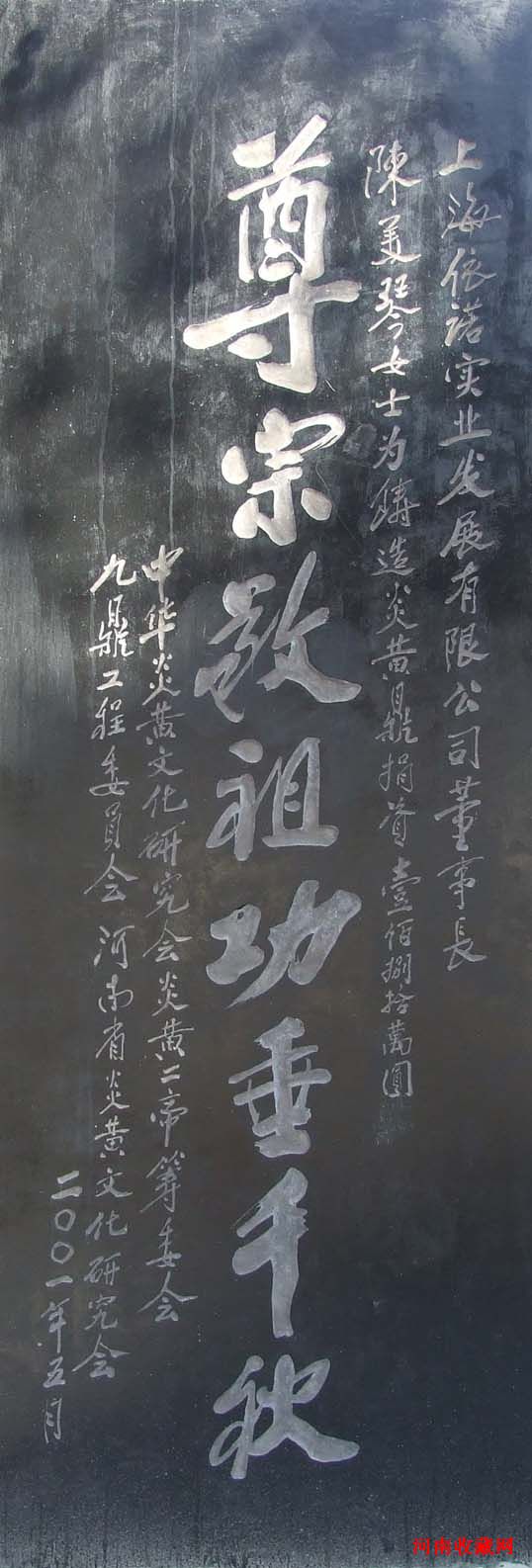 2004年3月13日,炎黄二帝巨塑工程手续正式签字移交。移交前,河南省炎黄文化研究会已经基本完成了106米高的炎黄二帝巨塑主体工程和巨塑广场7000平方米的土方工程,并安放了一个重20吨的青铜主鼎。移交时,价值1200万元工程资产、6000万元的无形资产以及注册的38个商标的知识产权全部移交给了黄河风景名胜区方面,而这一切都是无偿的。2004年6月28日,炎黄二帝巨塑工程正式复工,今年10月主体工程完工。
