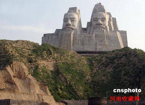 炎黄二帝的形象,经过全国600多位专家学者5年论证10次修改而定型。从原来的站姿改成依山而建,容貌也经过多次修改。