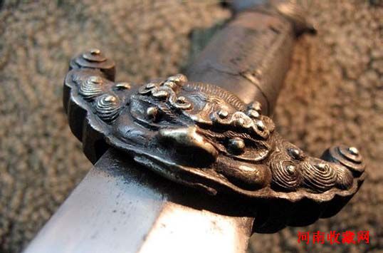 二、睚眦(音Yázì),是老二,平生好斗喜杀,刀环、刀柄、龙吞口便是它的遗像。这些武器装饰了龙的形象后,更增添了慑人的力量。它不仅装饰在沙场名将的兵器上,更大量地用在仪仗和宫殿守卫者武器上,从而更显得威严庄重。