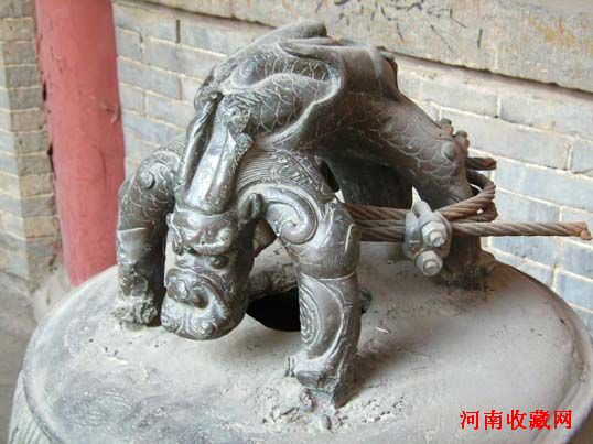 四、 蒲牢,形似盘曲的龙,排行第四,平生好鸣好吼,洪钟上的龙形兽钮是它的遗像。原来蒲牢居住在海边,虽为龙子,却一向害怕庞然大物的鲸鱼。当鲸鱼一发起攻击,它就吓得大声吼叫。人们报据其“性好鸣”的特点,“凡钟欲令声大音”,即把蒲牢铸为钟纽,而把敲钟的木杵作成鲸鱼形状。敲钟时,让鲸鱼一下又一下撞击蒲牢,使之“响入云霄”且“专声独远”。