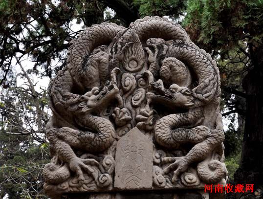 八、负屃(音 xì),似龙形,排行老八,平生好文,石碑两旁的文龙是其遗像。我国碑碣的历史久远,内容丰富,它们有的造型古朴,碑体细滑、明亮,光可鉴人;有的刻制精致,字字有姿,笔笔生动;也有的是名家诗文石刻,脍灸人口,千古称绝。而负屃十分爱好这种闪耀着艺术光彩的碑文,它甘愿化做图案文龙去衬托这些传世的文学珍品,把碑座装饰得更为典雅秀美。它们互相盘绕着,看去似在慢慢蠕动,和底座的霸下相配在一起,更觉壮观。