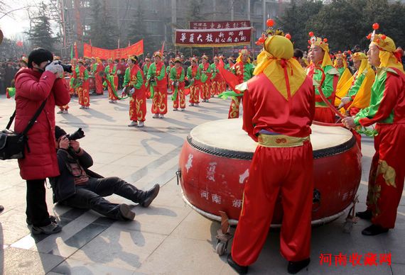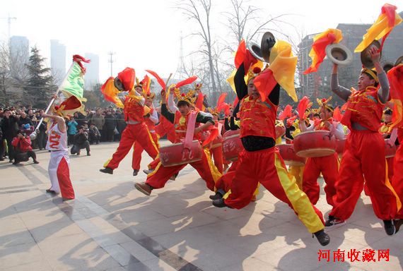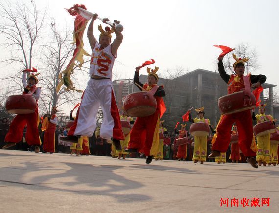 欢庆的锣鼓敲起来,长垣县农民大型盘鼓队,阵容强大、场面热烈,充分表现出了富裕的农民欢天喜地的心情。