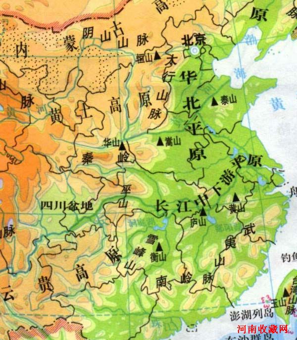 从地图上可以看出,中原大地山环水抱。围护中原的山脉有三重,一列是主山,是中原大地背依的龙脉之山:秦岭山系。