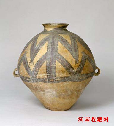 此罐上的变形蛙纹是马家窑彩陶应用较为普遍的花纹之一。
