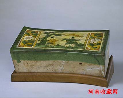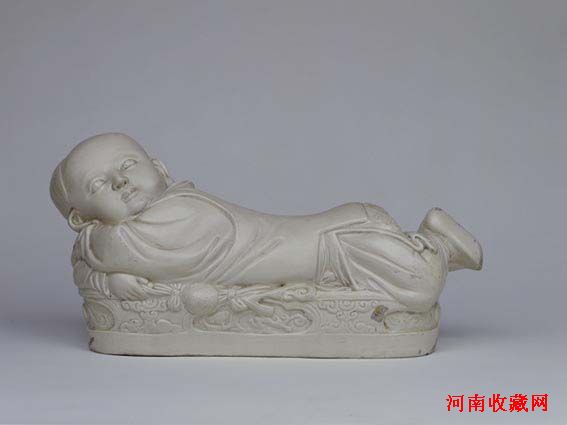枕是睡觉时垫首用具。在中国古代,人们喜欢使用玉枕、瓷枕,这是由于玉、瓷可以爽身怡神,甚至有“明目益睛,至老可读细书”的作用。瓷枕始创于隋代,盛行于唐、宋、元各代。此件孩儿枕塑制精美,人物形态活泼、悠然,是中国古代瓷器中的珍贵制品。