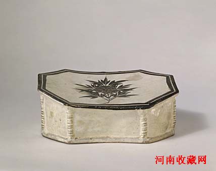 八方形枕是磁州窑常见的枕式,在窑址调查中发现有专门烧这种枕的窑。传世八方形枕的装饰纹样多为折枝花鸟、莲池游鸭、鸡、兔等,具有浓厚的生活气息。