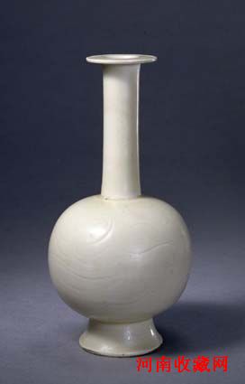 定窑白釉刻花直颈瓶,宋,高22cm,口径5.5cm,足径6.4cm