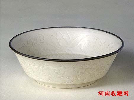 印花装饰是宋代定窑所采用的一种主要装饰手段。北宋中期以后定窑发明了覆烧工艺,“芒口”是这种工艺所留下的特征,覆烧可以充分利用窑的容积,大大提高产量。