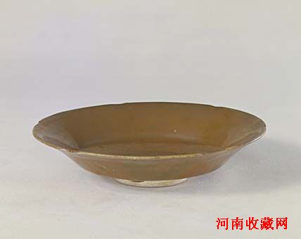 宋代定窑以烧白釉瓷器为主,而酱釉器和黑釉器的数量则较少。酱釉器又称作“紫定”,黑釉器又称作“黑定”。此盘因釉色较浅,釉面泛黄色,所以这种酱釉器又称作“紫金釉”。目前所知除河北定窑烧制酱釉瓷器外,河北磁州窑,河南修武窑、鲁山窑、宝丰窑,陕西耀州窑,山西介修窑,甘肃安口窑等也有烧制。