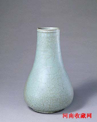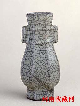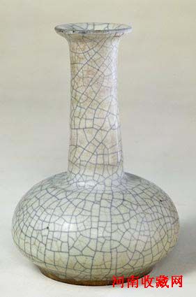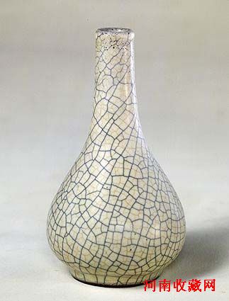 此瓶釉面光亮莹润,通体开细碎鱼子纹,纹片自然美观,别具一格,为典型的哥窑产品。
