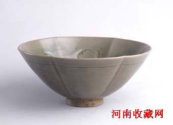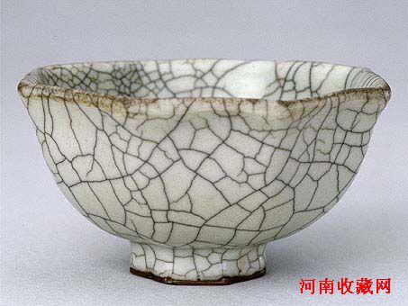 此碗造型新颖雅致,折角棱线分明,线条宛转自然,为宋哥窑器物中的珍品。