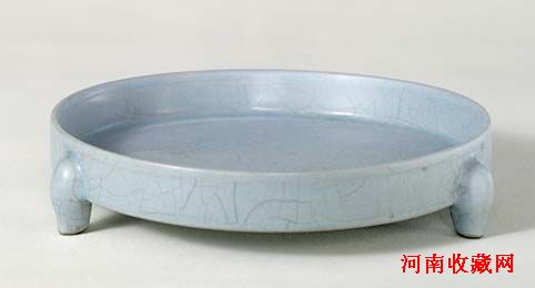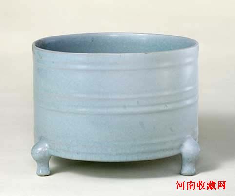 汝窑三足樽,宋,高12.9cm,口径18cm,底径17.8cm