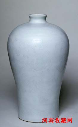 此梅瓶保持了宋代梅瓶器身修长挺拔的特点,适当压缩了瓶身的高度,放宽了肩部和足部,使各部位比例更趋谐调。瓶体所施甜白釉纯正洁净,色泽柔润,纹饰刻划细腻,是永乐时期甜白釉瓷器中不可多得的珍品。永乐时期甜白釉器物是宫中主要用瓷,据1989年景德镇明代御窑厂遗址发掘报告显示,在永乐前期地层中98%以上的出土物为甜白釉瓷器。