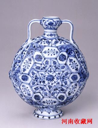 明永乐青花呈色浓艳,可见结晶斑。此瓶应是受西亚器物风格的影响而烧制的。