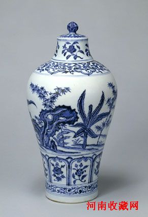青花竹石芭蕉纹梅瓶,明永乐,高41cm,底径12.2cm