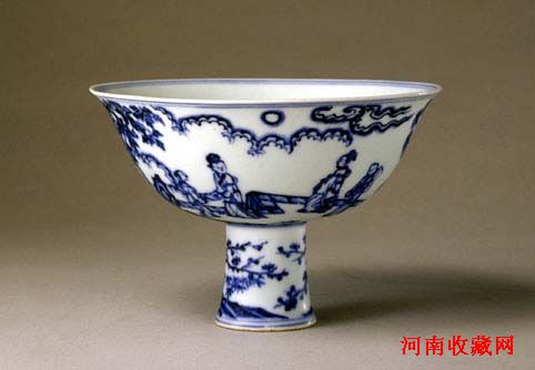 青花人物纹高足碗,明宣德,高10.2cm,口径15.5cm,足径4.5cm