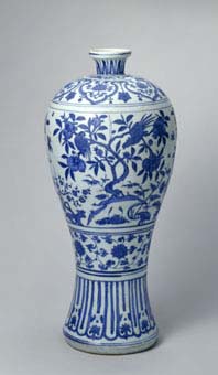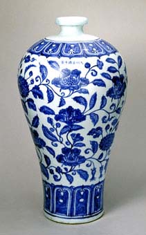 此梅瓶造型秀美,青花色泽浓艳而有变化,使画面具有层次感,为永乐青花瓷器中的佳品。
