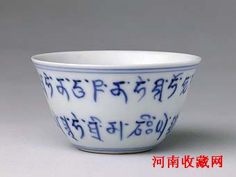 明初常以梵文、阿拉伯文装饰瓷器,正德时期阿拉伯文更为流行,它出现在各类器物上,文字一般多含吉祥祈福之意。有时内容已不重要,相当一部分文字已无法释出原意,而只是作为装饰纹样。