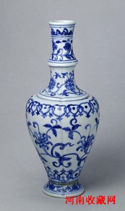 青花玉壶春瓶,明永乐,口径7cm,足径10cm,高27cm