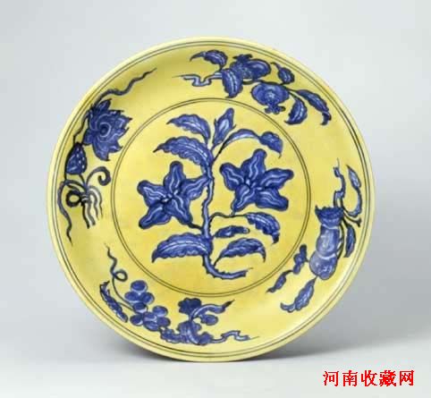 此盘胎重体大,形制完整,反映出洪武时期制瓷的风格与水平。所绘花卉纹饰笔法流畅,充满活力,特别是盘心的折枝莲花,别具清淡高雅之韵味。这种豪放潇洒、疏密有致的装饰风格充分显示出明初青花艺术的特色。