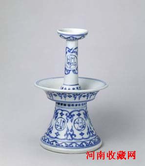 青花阿拉伯文烛台,明正德,高24.6cm,口径6.7cm,足径13cm