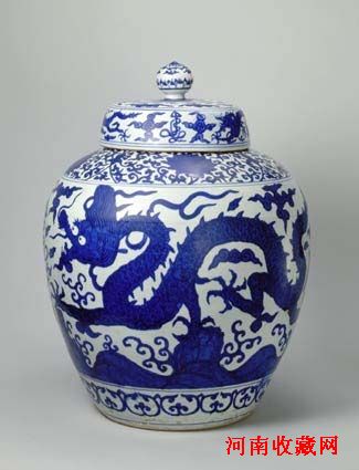 青花夔龙纹罐,高19cm,口径15.8cm,足径13.8cm