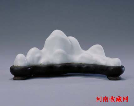 此器釉色仿宋代青白瓷之效果,釉色青莹,其质感如青白玉。山形高低错落有致,富有层次感,视之恍如文人画中层峦淡远的境界。