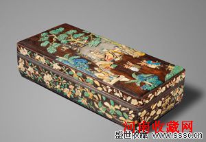 明嘉靖紫檀嵌玉石人物图长方盖盒