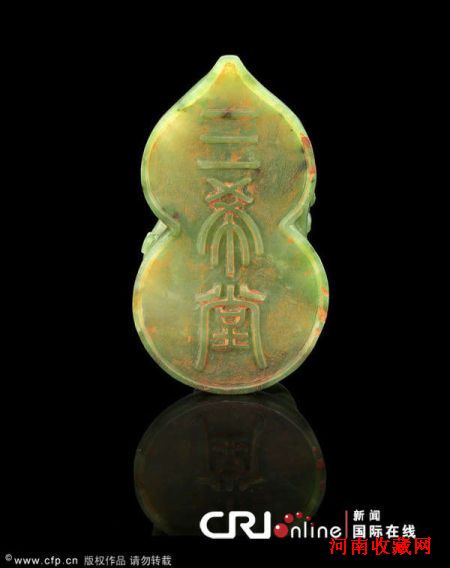 这枚玉玺呈翠绿色,形状是双葫芦,代表天地及寓意吉祥和长寿,晶莹剔透,堪称极品。英国邦瀚斯拍卖行(Bonhams)的专家进行仔细鉴定后,最近才确认这是一枚极不平凡的玉玺。它本来放在紫禁城养心殿西端的三希堂,大约在1900年义和团事件之后,被人偷运到欧洲。