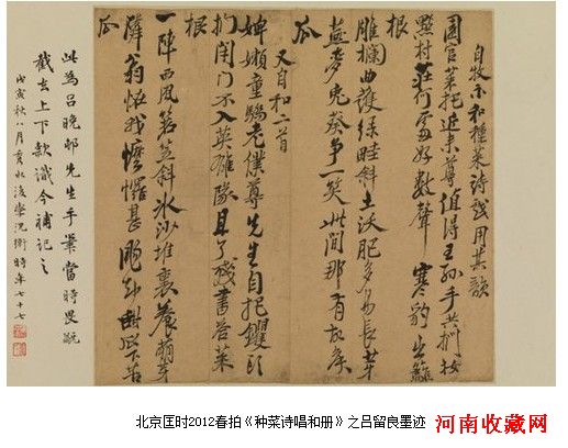 北京匡时2012春拍即将推出的一部江南吴家珍藏三百年的鸿篇巨制,完整保留了吕留良的四首《和种菜诗》。整部作品最重要的《种菜诗唱和诗册》、《赠行诗》,表面上是以吴之振为主线的遗民行迹,然而吕留良的影响力却一直贯穿始终,发挥着至关重要的作用。这部集子涉及人物包括黄宗曦、吕留良、黄宗炎、陈廷敬、王士祯、梁清标、汪婉、尤侗等当时五十余位文坛、朝野巨子。由吴之振后人保存,绵延至今已有三百多年的历史。历经清代文字狱、数十年战乱和文革各种磨难,三百年蹉跎,劫后余灰,吴家后人能够将其完整保存至今,其中艰难可想而知。