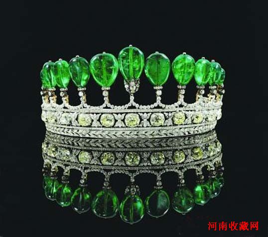 2011年5月18日苏富比拍卖行说,17日晚在日内瓦以1273.69万美元的高价顺利拍出一顶嵌有祖母绿宝石和钻石的王冠。