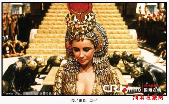 2012年3月23日消息,银幕传奇伊丽莎白·泰勒在好莱坞大片《埃及艳后》穿着的披肩将被拍卖。 这件由皮革和黄金打造的衣服设计时力图产生凤凰翅膀的视觉效果,而泰勒在1963年这部经典影片的两个场景中穿着它登场。拍卖的起价是10000美元,但据业内人士透露,最终成交价将可能达到数十万英镑。