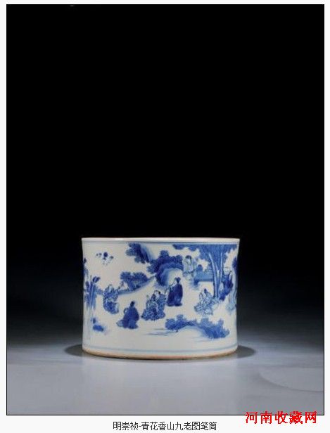 瓷器部分,“明崇祯 青花香山九老图笔筒”笔筒釉色清亮,底部无釉处可见白皙胎体,宛若婴儿肌肤,通体纹饰以青花绘就,发色淡雅,腹部通景绘九位高士雅集场景,松竹,九位高士或对弈,或抚琴,崇祯青花画风飘逸,色泽清雅,尤其是此时以版画为本绘制的各类戏曲人物故事,其人物绘制细致生动,与康熙时期的大气笔法不同,本品胎釉、修足等处时代特征明显,青花发色,流云、草地等细节描绘方法均为当时所独有,尤为可贵之处,在于其体量硕大,目前所见同类器,罕有出其右者,且整器保存状态完好,十分难得,最终以89.7万高价成交。