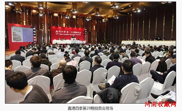 中国嘉德(微博)2012年首场拍卖――嘉德四季第29期拍卖会26日在北京以2.9亿元人民币的总成交额收槌。
