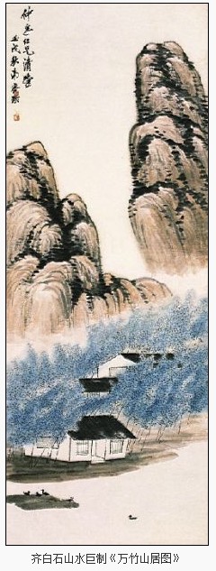 据悉,2012年北京匡时(微博)春拍将推出一件流传有序的齐白石山水巨制《万竹山居图》。